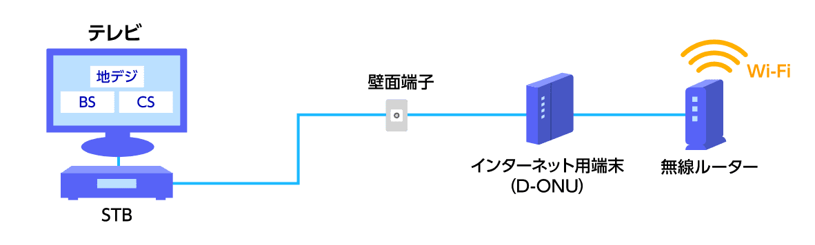 専用端末を設置いたします。テレビ・インターネット別々のお部屋でも取り付けが可能です。