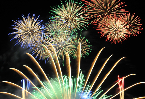 江戸時代より「三州吉田の花火祭り」として全国にその名をうたわれた、清流豊川の水面を埋め尽くす大花火大会。