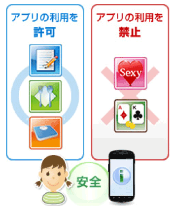 スマートフォンの魅力であるアプリの中にも、お子さまにとっては不適切なアダルトやギャンブル、暴力的なアプリも存在します。