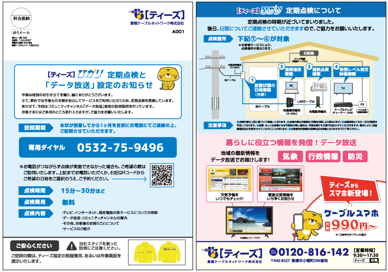 ティーズでは、今後も引き続き安心してサービスをご利用いただくため、定期点検を実施しています。