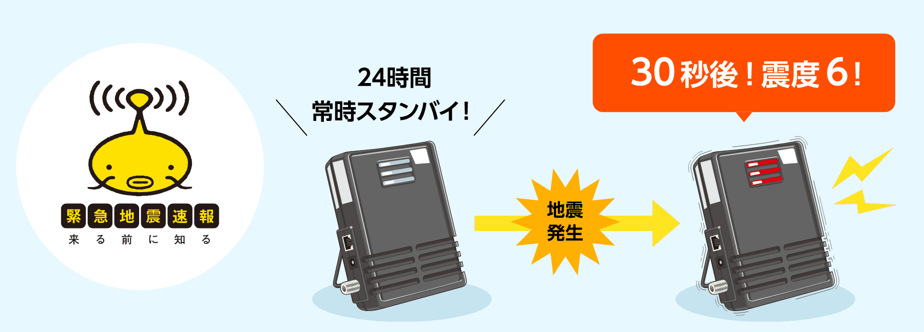 大きな揺れが来る前に「予測震度」と「到達時間」を「音声」で通知する新しいサービスです。